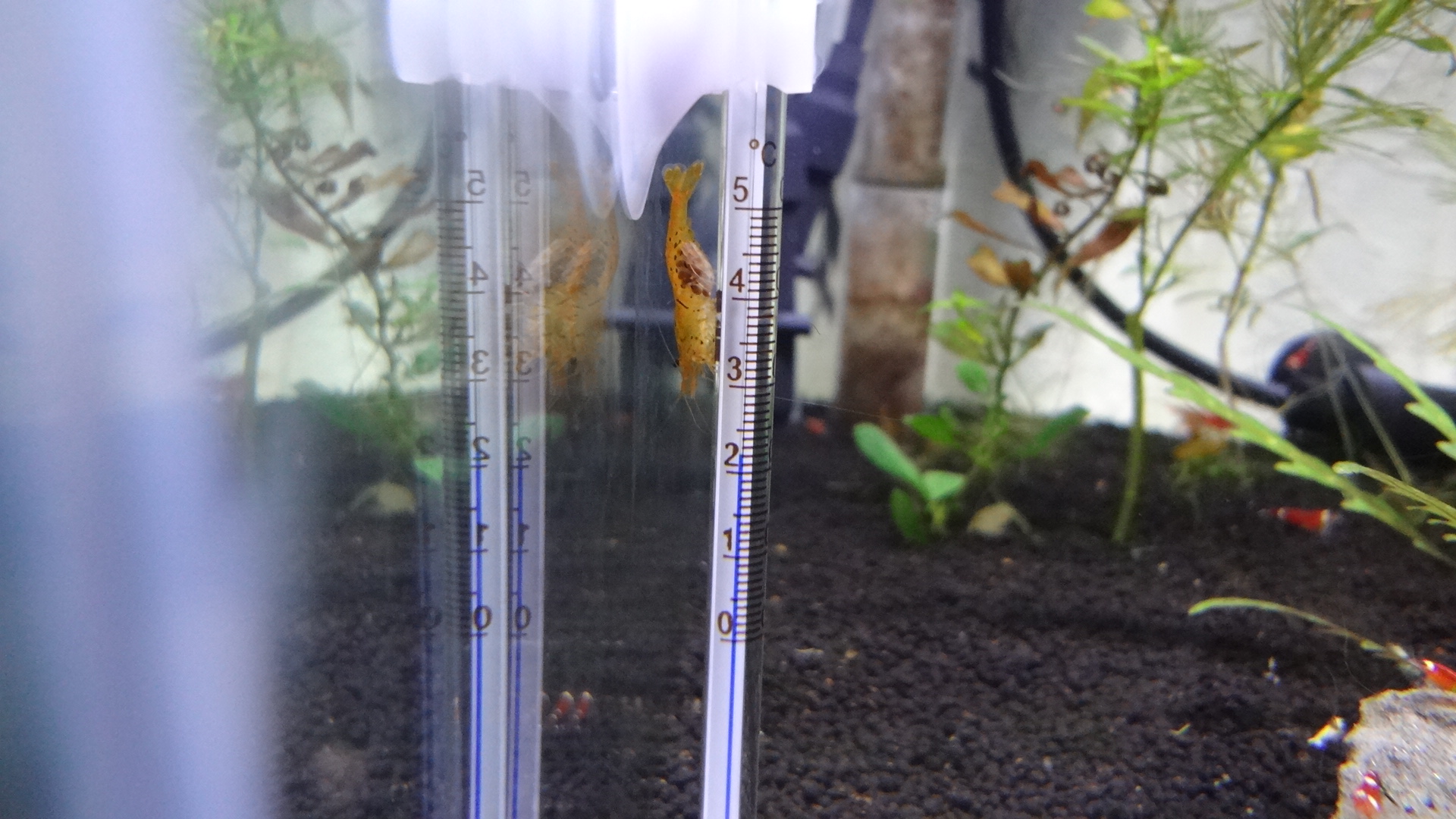 サンタXイエローの子、本当に、ただの透明なエビにしか、見えないんです~。