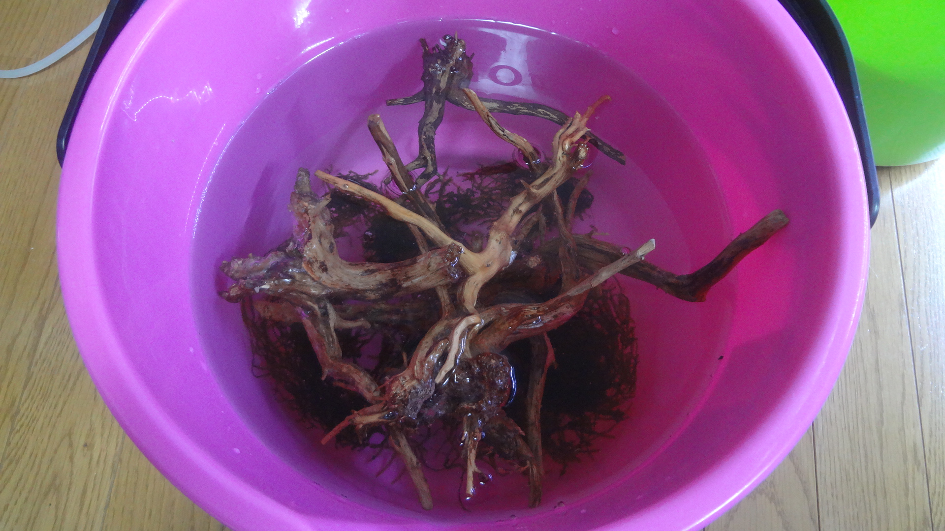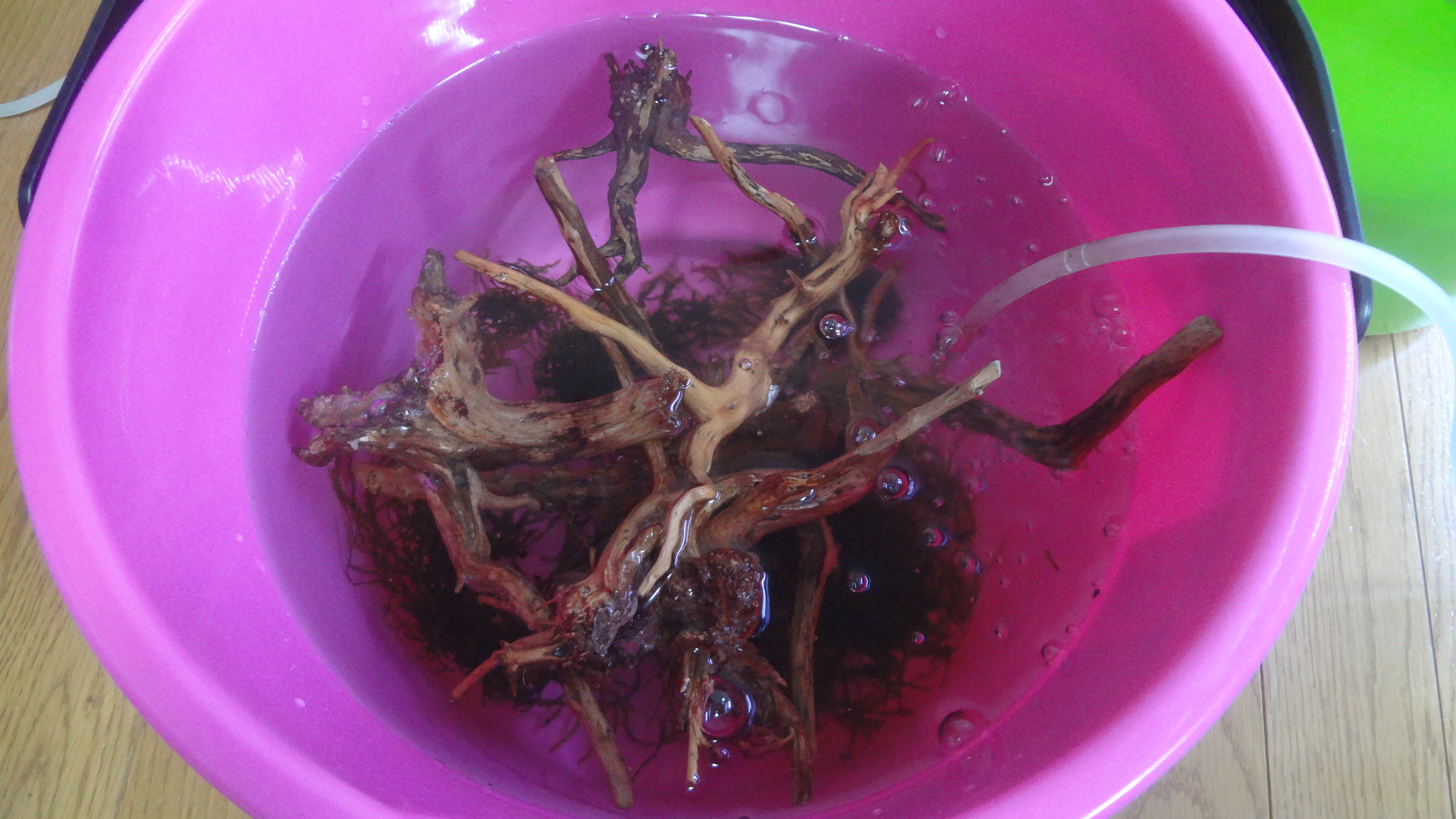 このまま流木に、水を吸わせて行きます。