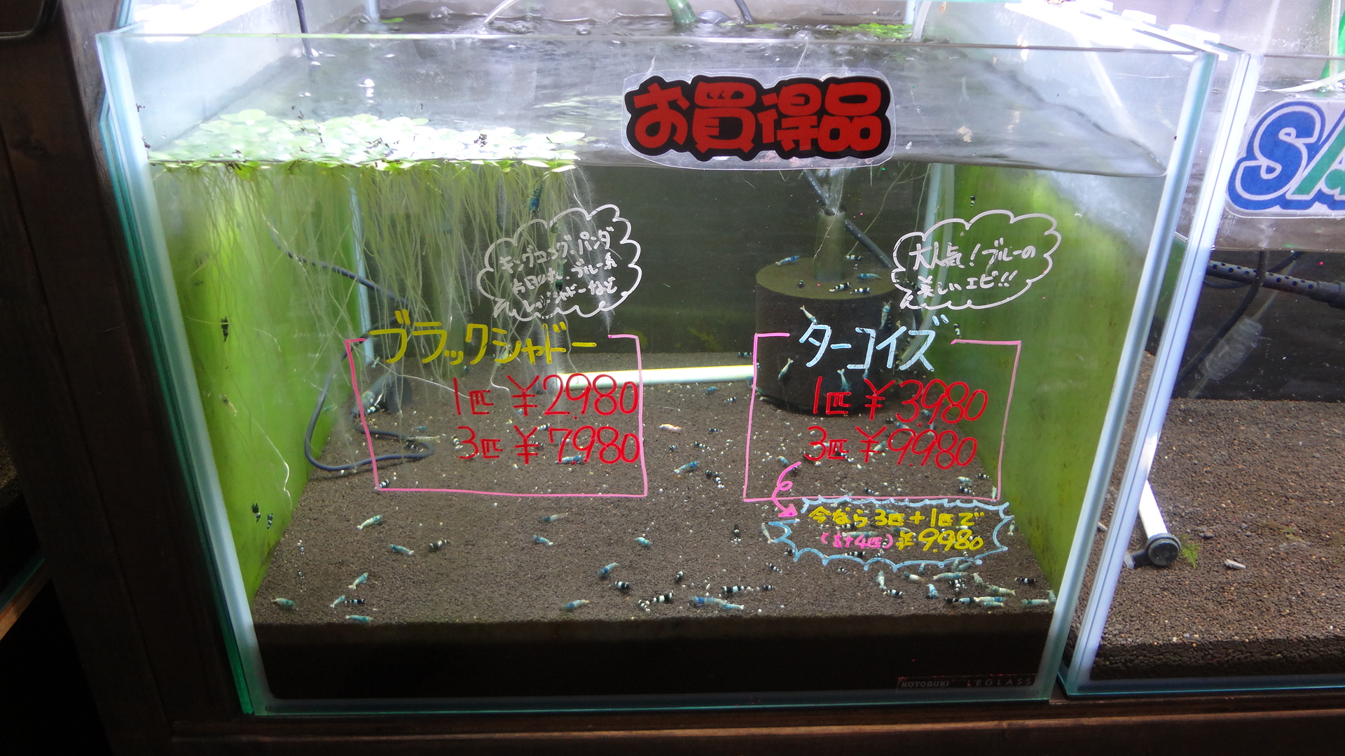 こちらは、海水魚・熱帯魚・水草・えびちゃんは勿論の事、