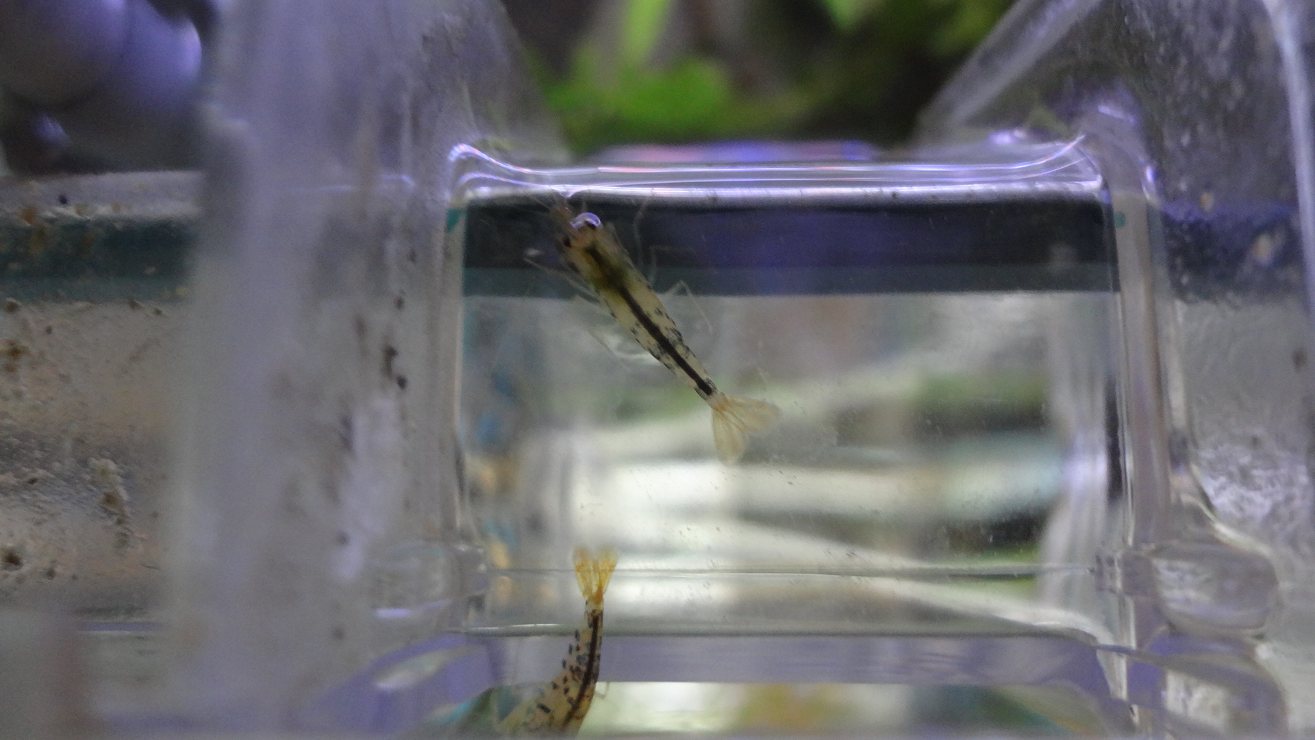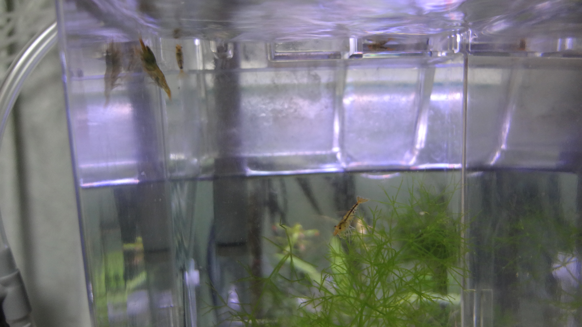選別用に水槽にセットしたサテライトに抱卵ママさんまで進入してきます!(笑)