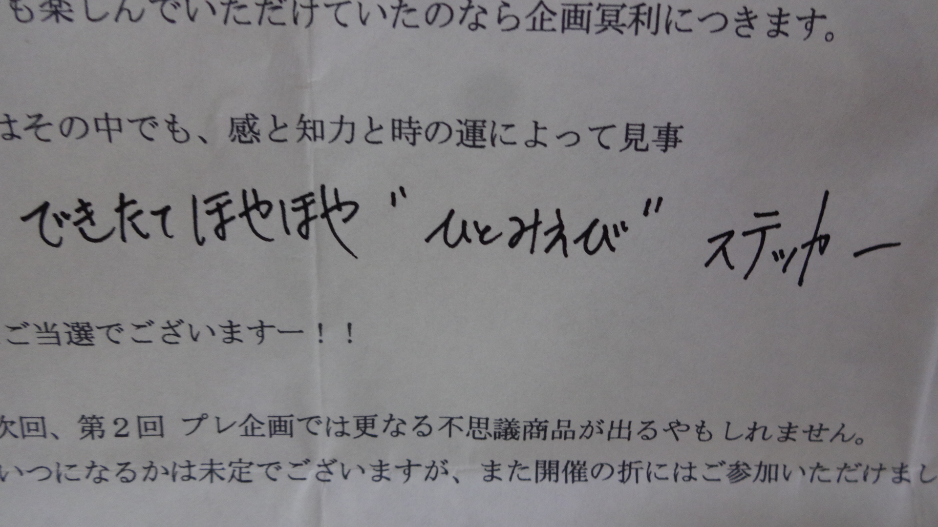 ステッカー、当たりました。