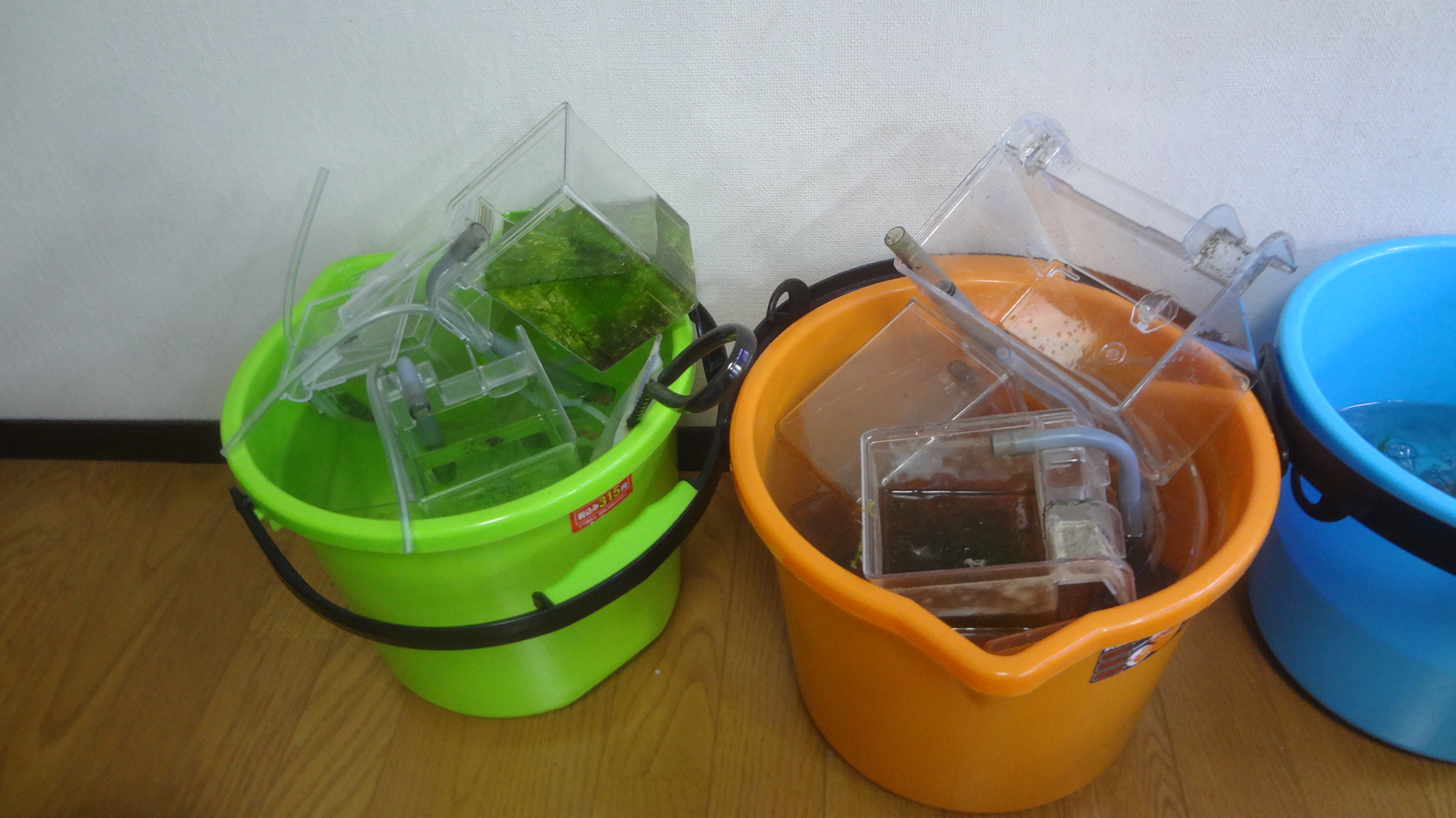 バケツに入れまして、お水を入れて、