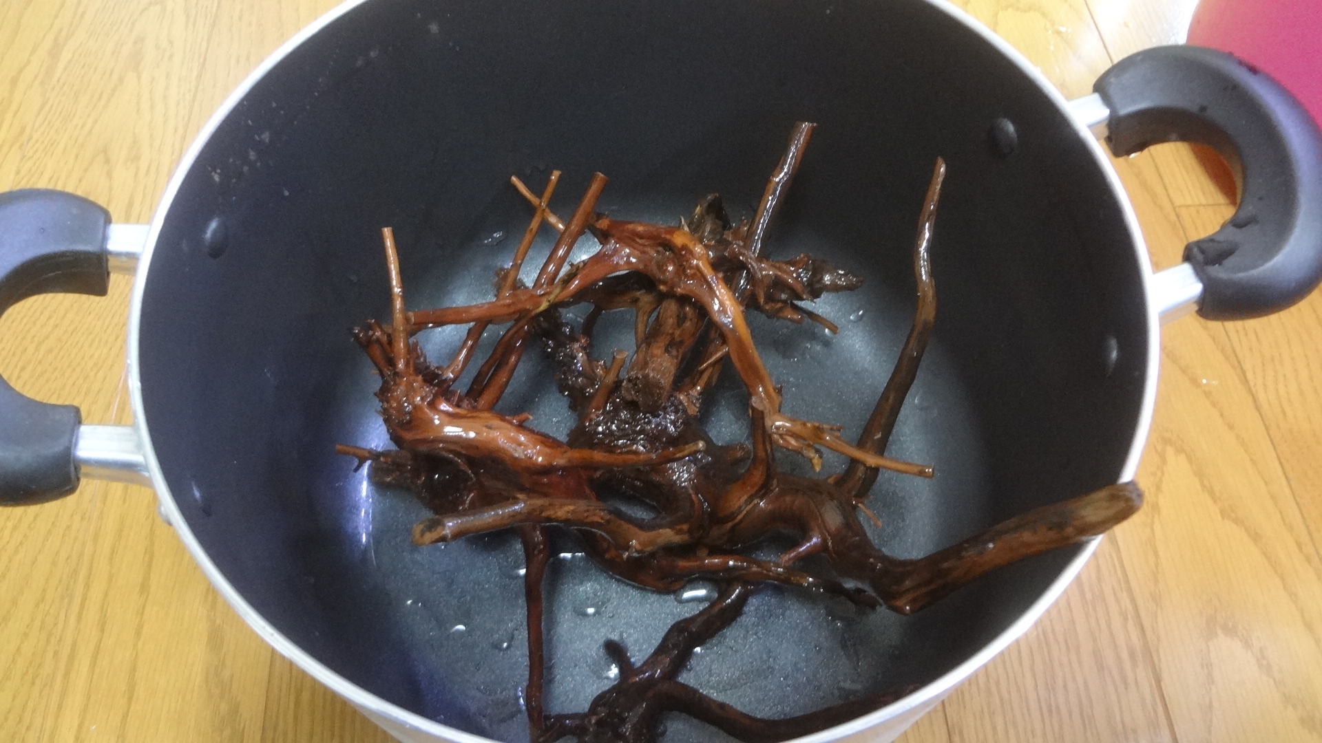 そして、煮上がりました流木を、