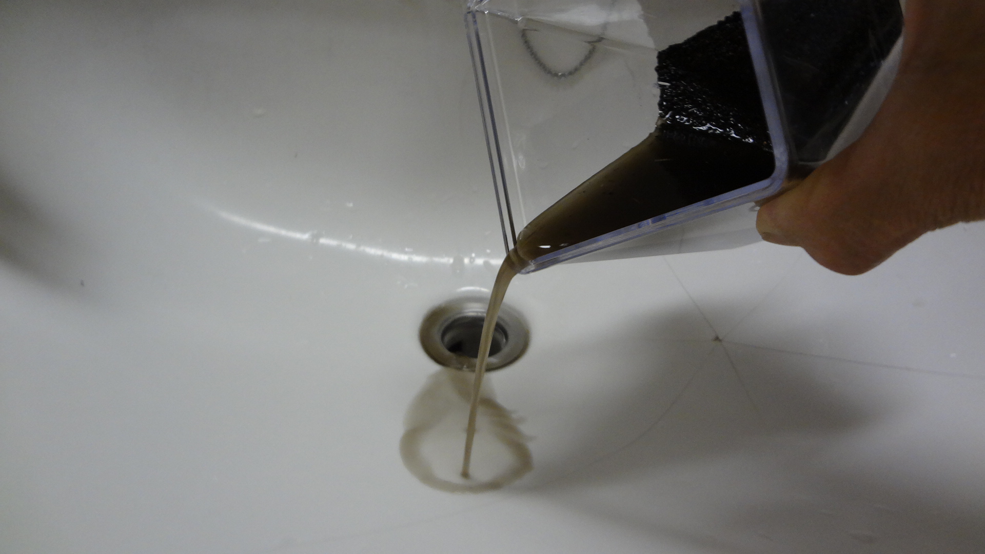 次に、こちらに、足し水用に作った水を、コップ1杯入れます。