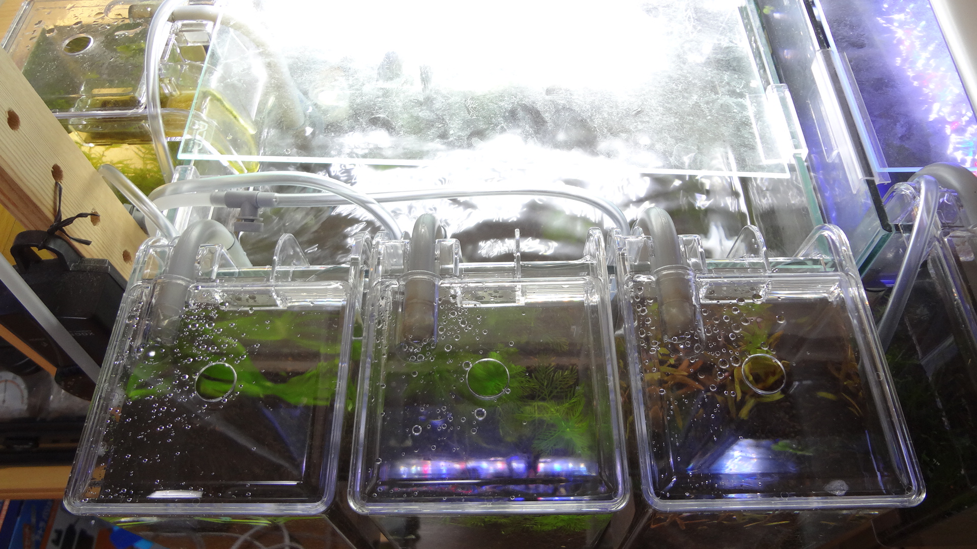 そうしましたら、水槽へ掛けるのですが、