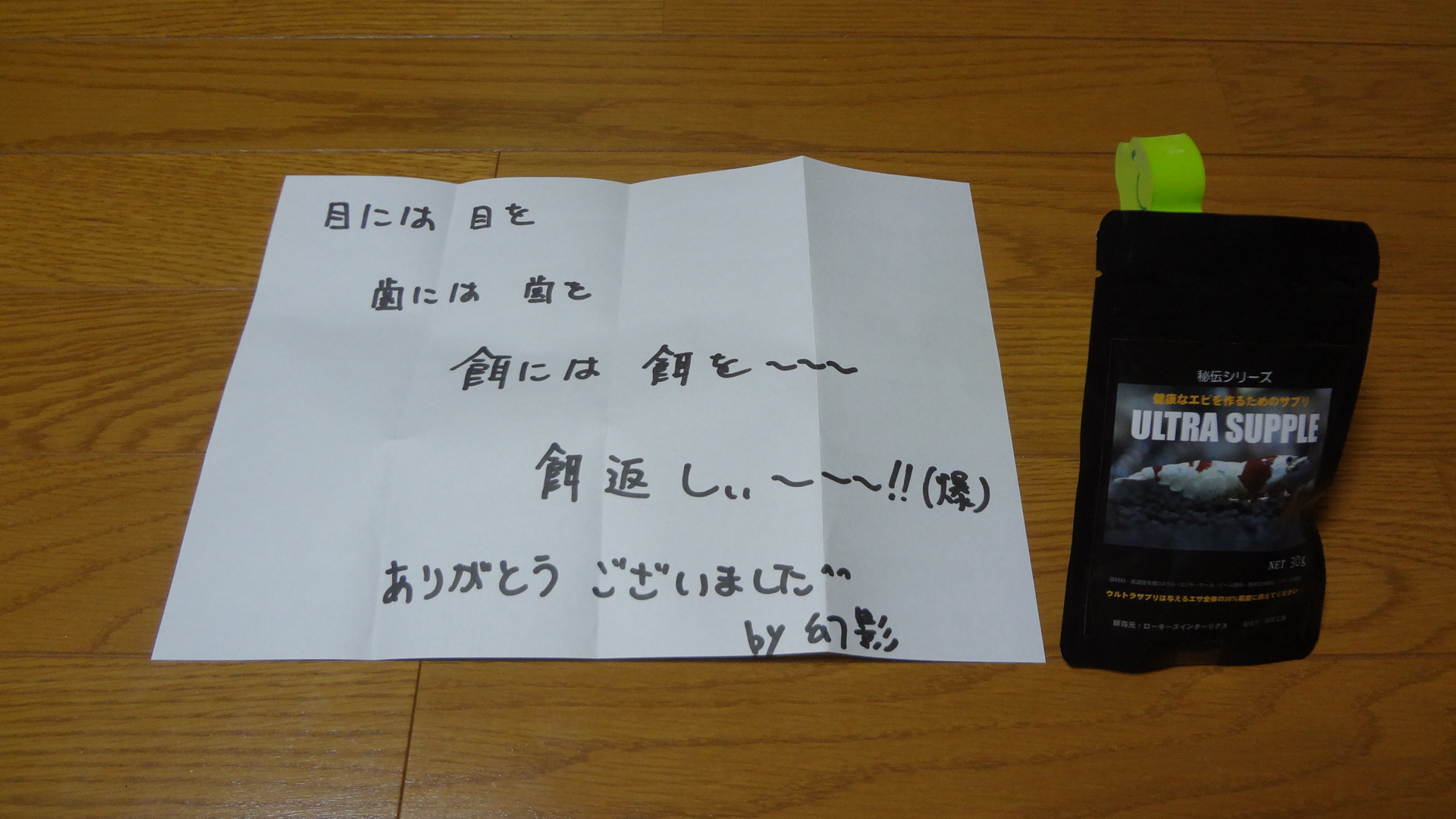 やはり頂きっぱなしは、私のありがとう精神に反しますので、お気に入りの餌を送らせて頂きました!(爆)