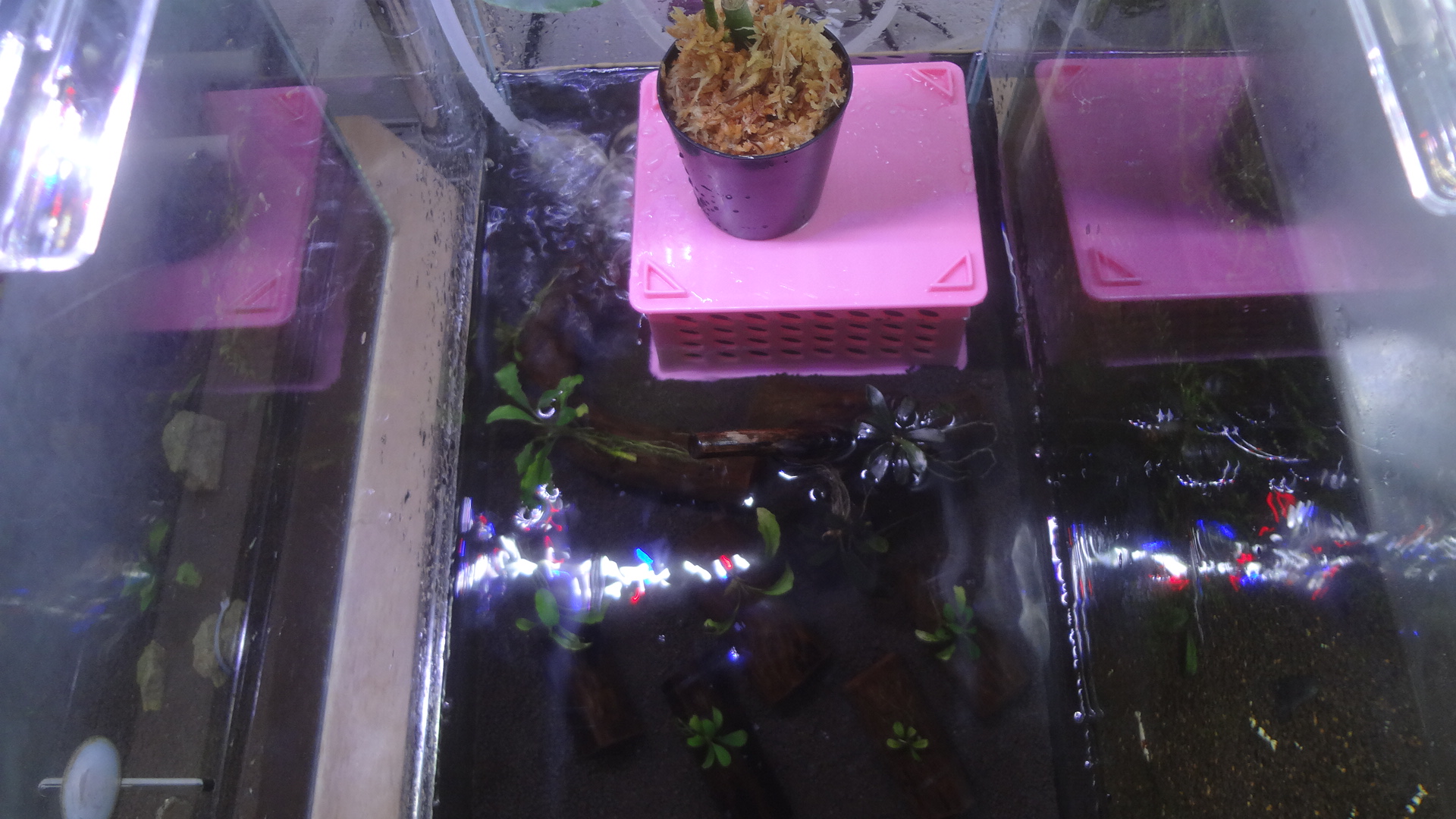 こちらの水槽の、ピンク色の台を、