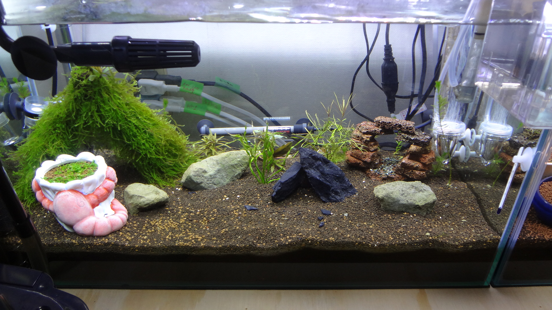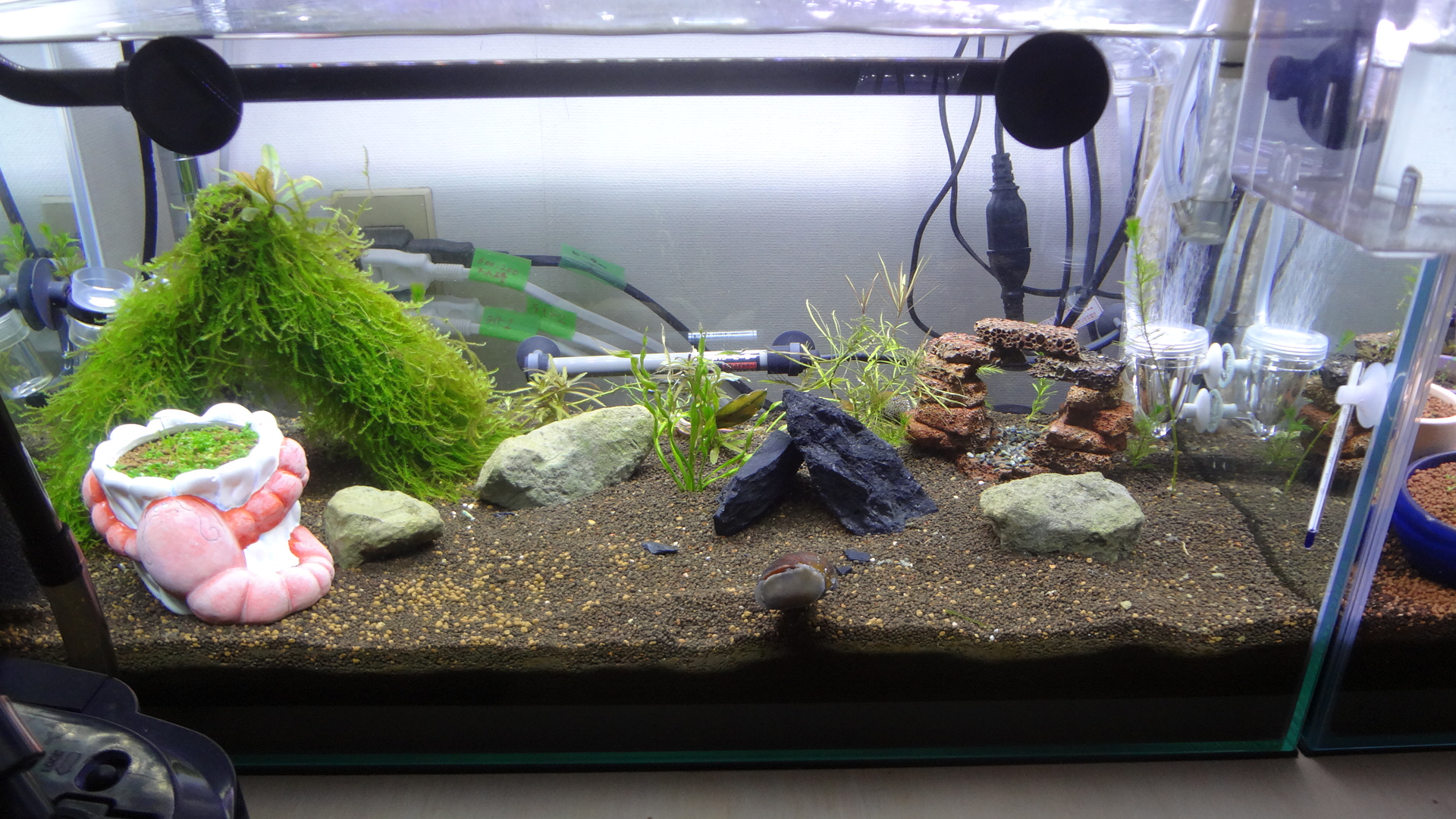 こちらの水槽は、最近、稚えびちゃんを、入れ始めたのですが、